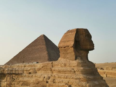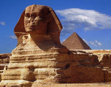5分 超棒古埃及的狮身人面像又称“斯芬克斯”,位于埃及吉萨的金字塔墓区。