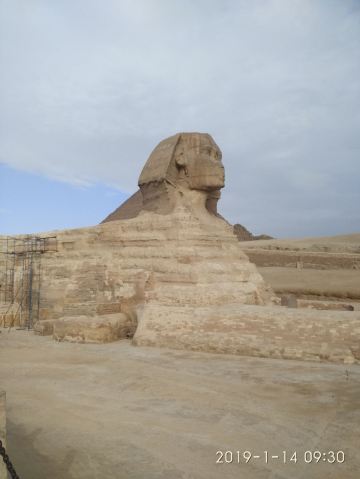 它是一座巨大的石雕,长约 73 米,高 20 米。狮子的身体象征着力量,而人面通常被认为是法老哈夫拉的面容,象征着法老的智慧和权威。