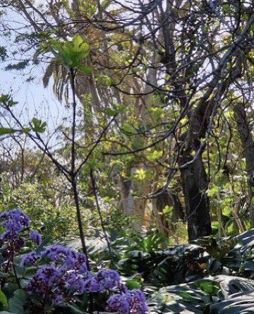 这个花园景色优美,有一个大池塘可以喂鸭子。这里的树木很茂盛,有红杉、诺福克松树、北非雪松等。