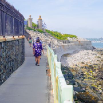 沿着纽波特东海岸的Cliff Walk是一条长3.5英里的散步小径,沿路有各种花草树木,小鸟,碎石,历史建筑。1975年Cliff Walk被评为美国国家游径(National Recreation Trail)。这是新英格兰地区第一条也是全美第65条。