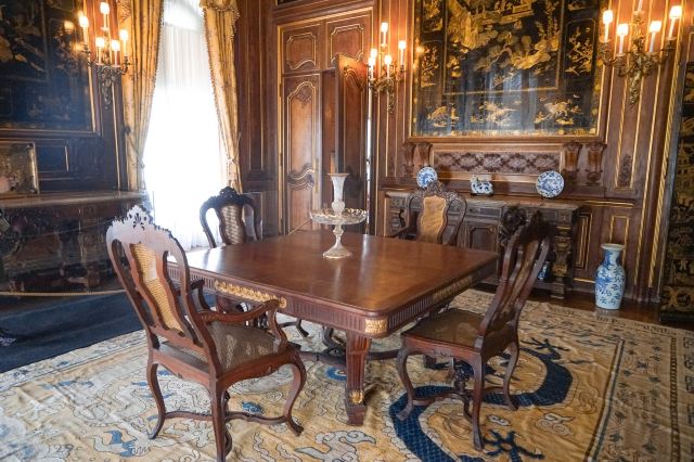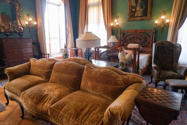 城堡共有三层,白色陶瓦建设,别墅旁便是一大片绿地花园,别墅前还有一座喷泉,阳光映衬下穿越到一座欧式城堡,这座古宅也是一座夏日用来避暑度假的,同时也举办过多场大型派对。相比其他别墅的淡淡光线,这座城堡内光线充足,而且别墅的装点与布置也是古典优雅,除了欧式建筑的外观,别墅内部也很有看点参观性。