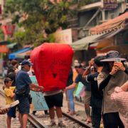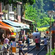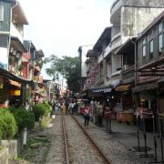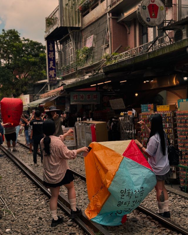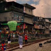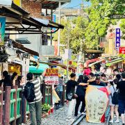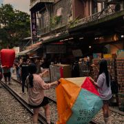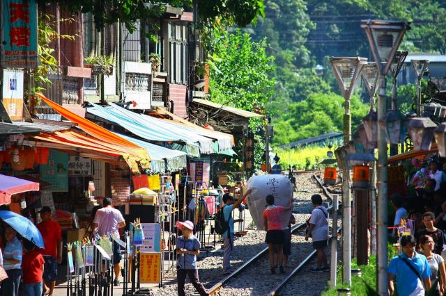 十分老街与十分车站紧紧相连,虽没有百年红砖建筑,也没有知名建筑风格加持,但老街紧邻铁道的特点,是铁道迷必定怀旧的好去处,而老街上的天灯工艺品店,一直是这里的招牌,搭配客家花布、影像明信片,为复古的十分老街注入新的活力与热情。短短10分钟路程,值得你花上几小时细细品味,慢慢体会,拍照留念,铁道寻宝,或是买个天灯祈愿,都是游览十分老街的热门玩法。