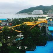 5分 超棒性价比挺高的一个好去处。预定的是海景别墅6天,有3个房间,出门就是大海,自带泳池。酒店的水比较贵,大概15人民币一瓶,自助餐一般,海鲜个头挺大,但是做的不好吃,吃饭可以选择的不多。水上游乐场很好玩,里面的水和水果都很便宜,水大概4块多人民币一瓶,水果8块人民币一小盒,可以刷卡,吃饭都以快餐为主,也有BBQ 之类的。门票大人80万越南盾,4岁以上的孩子70万越南盾,一天内可以无限次往返,游乐场设施都有身高限制,大多都是1.3以上的孩子能玩。在酒店住的话,坐缆车可以不用排队,有快速通道,出示房卡就可以。岛上不允许自己带水和食物,入岛之前会签协议,发现会罚款500美金(别让发现就基本没事)。游乐场还有夜间票,大概120万越南盾,晚上9点关门。