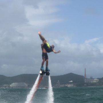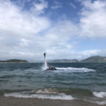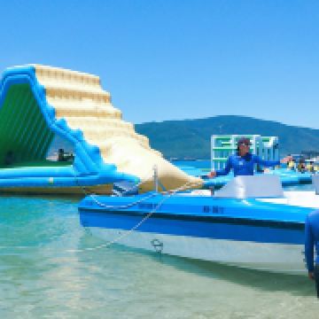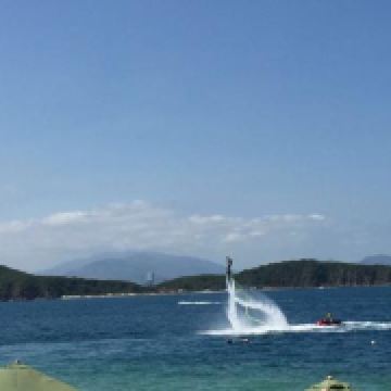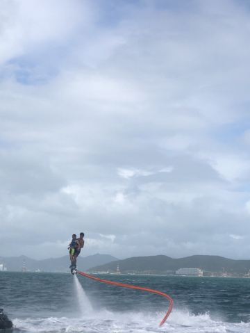 人气最旺的就是海上拖伞,排着好长的队伍,于苍穹之蓝投入碧海之蓝,在下坠之中感受心跳加速,因为安全措施做得很好,一点都不会害怕,比较刺激,但是在玩这个项目上全身湿透是必然的。降落伞项目靠快艇的速度来控制起降,从这个平台起飞,在海上绕行一圈后回到这里就算结束,整个过程3-5分钟。
