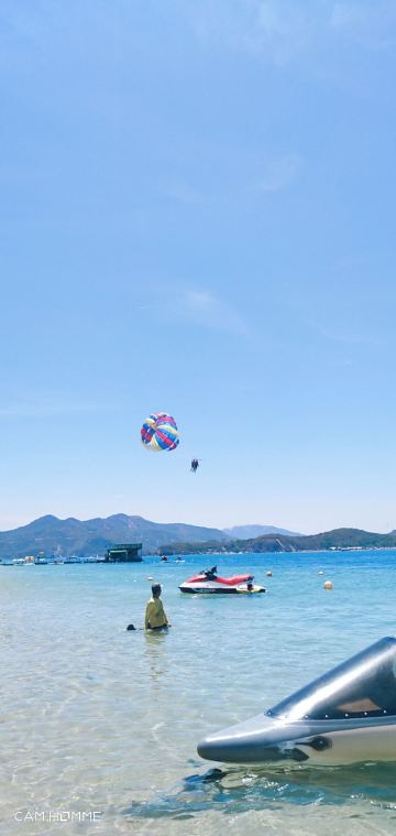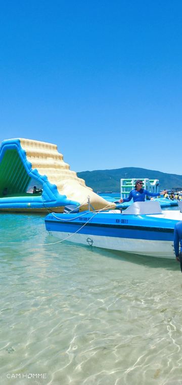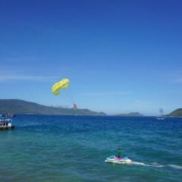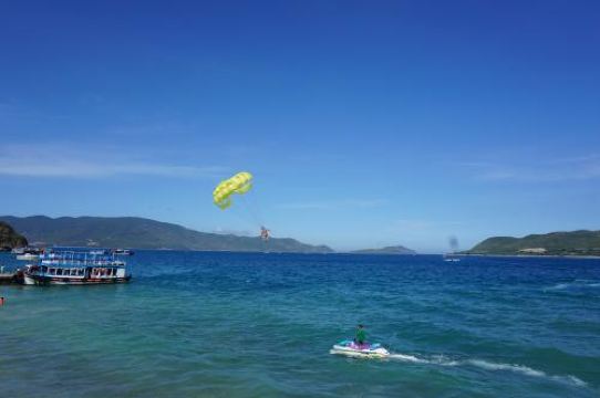 5分 超棒在芽庄呆的最久的岛屿就是汗谭岛了,这个岛主要是玩游乐项目的,汗谭岛又叫蚕岛,这边的海滩开发已经成熟了,有非常多的海上娱乐项目,潜水、拖伞、香蕉船、摩托艇等等,都是单独收费的。
