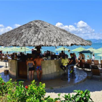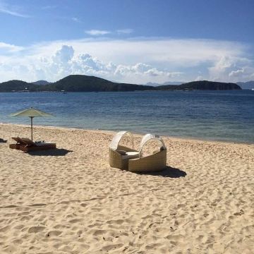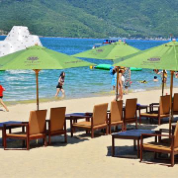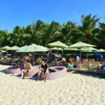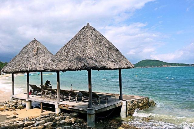 岛上分为两部分,一部分公共沙滩供游客登岛游玩,下午4点前离岛,公共沙滩比较热闹,能玩的项目也比较多,有拖拽伞、水上摩托、水上飞板等,旁边有自助餐厅、烤串和鲜榨果汁。酒店客人则能享受私人专属沙滩,砂质和海水质量都远远高于芽庄市区!