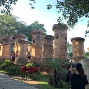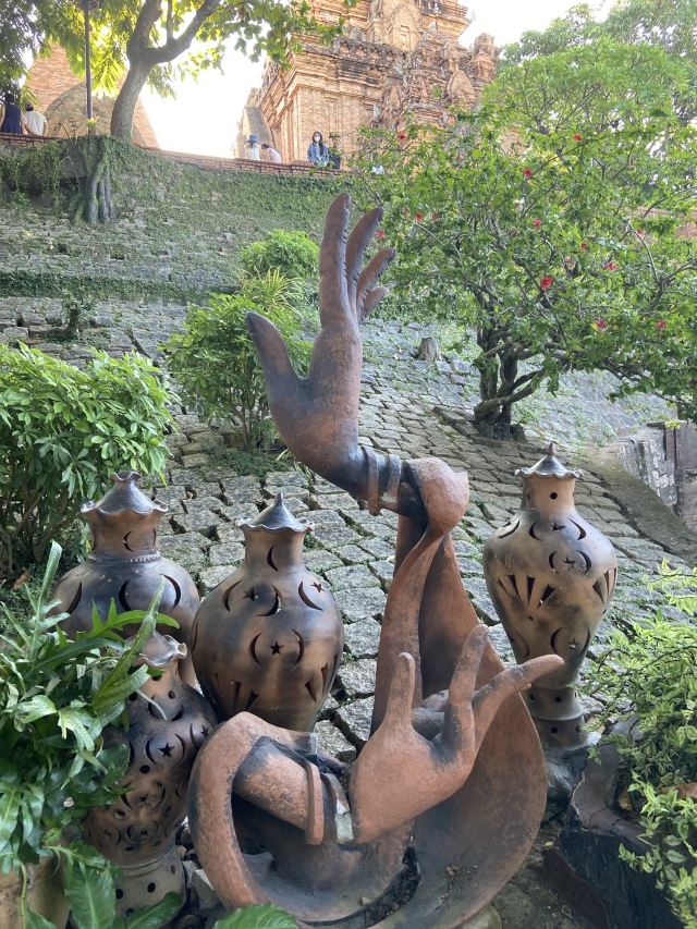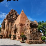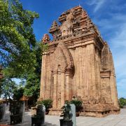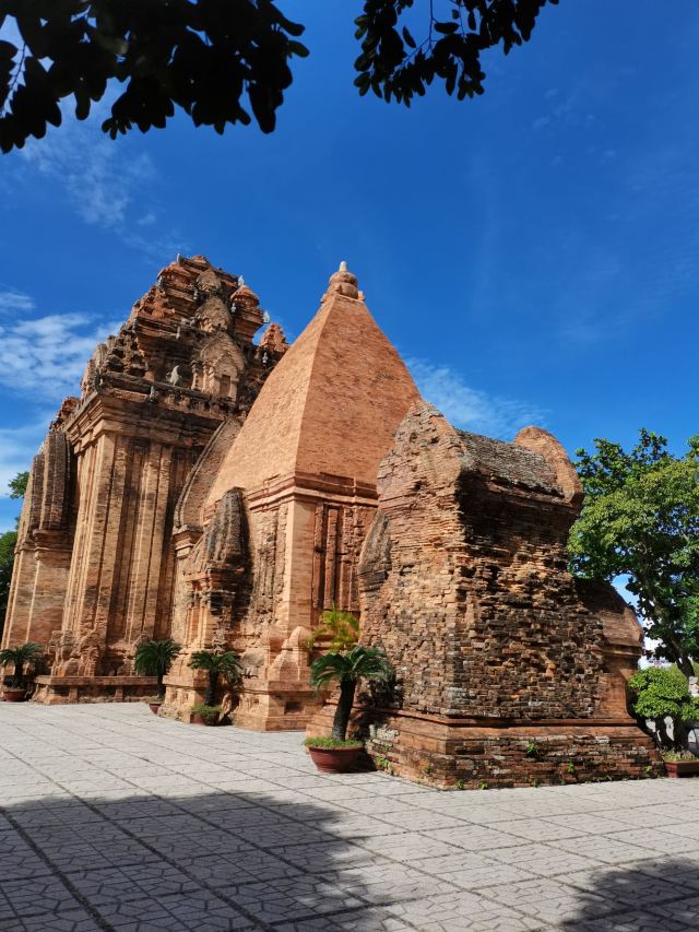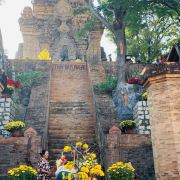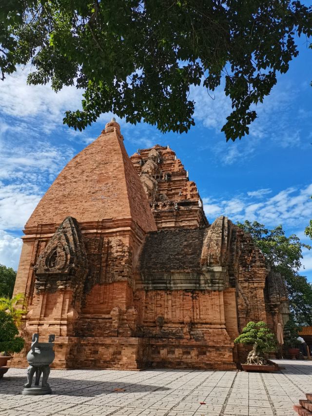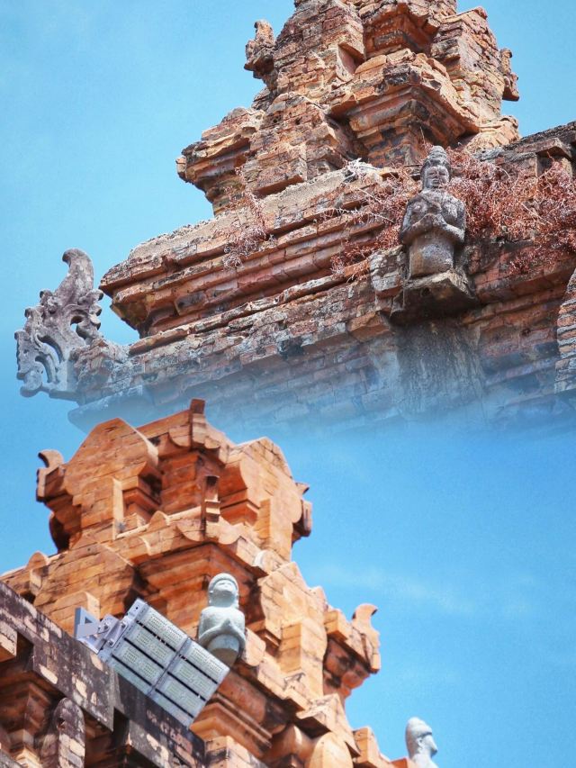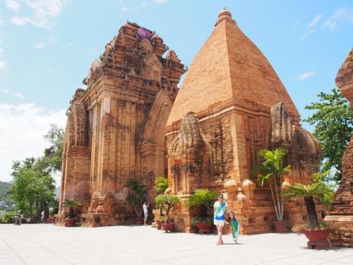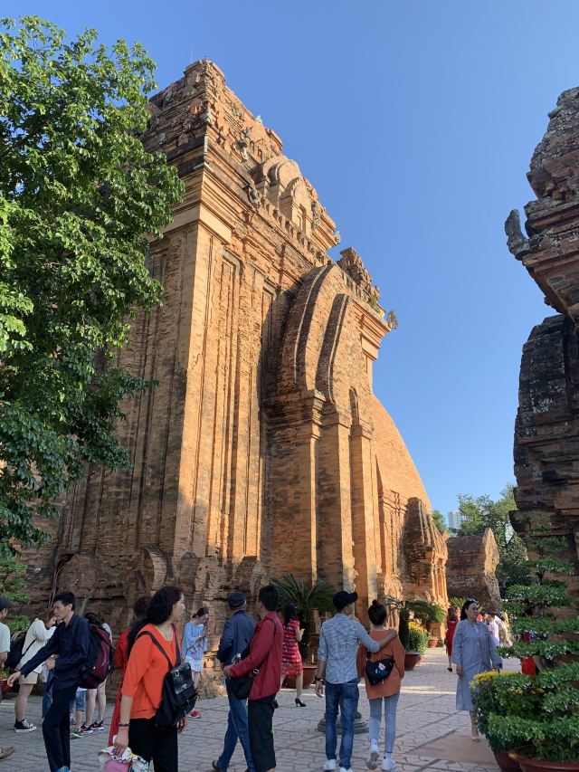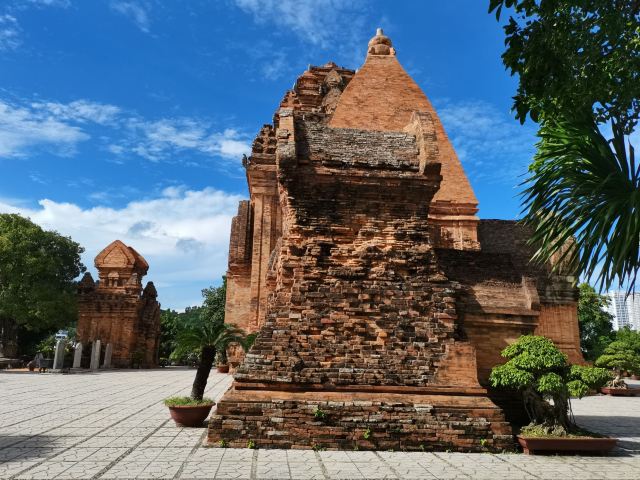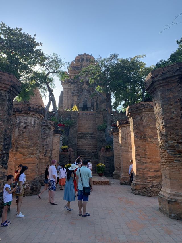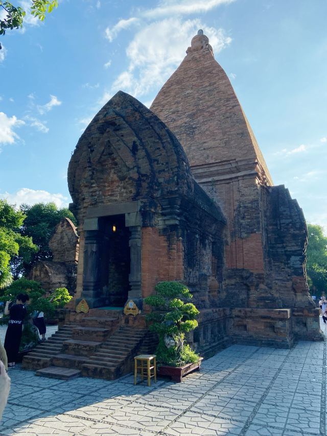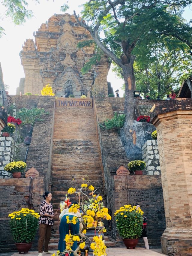 婆那加占婆塔,也译作天依女神庙,因为这里供奉的是天依女神,天依女神是占婆王国南部的一位女神。她保护着靠海吃饭的渔民,相当于中国渔民心目中的妈祖。天依女神庙坐落在芽庄海边一个悬崖上,可以俯瞰整个芽庄,据说在 7 至 12 世纪,此地共建有 8 座宝塔,现只剩 4 座,其中最大的主塔内供奉占婆女神,她是古时候统治芽庄的占婆王国之母,印度教徒称占婆女神是印度教希瓦神的化身,越南佛教徒称她为天依女神。占婆塔虽然不大,但是由于这里的建筑历史悠久,至今已有1200年的历史,是印度教的建筑,非常的有异域风情。建筑略有些柬埔寨吴哥窟的风格,但是规模小的多,雕刻也没有那么的细致。所以这里也被称作越南的小吴哥。