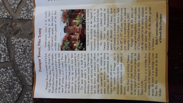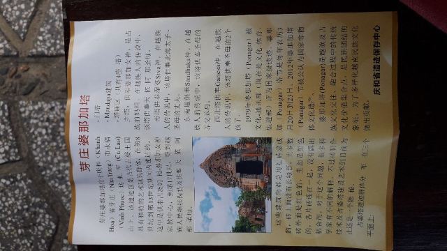 这个婆那加占婆塔的介绍和携程网上写的差不多,从历史价值上和景色评价上值得大家去参观。从市区出发的游客,乘坐4号公交车,直接到达了。(普及一下交通知识:4号公交是一条连贯6个著名景区的旅游线路巴士,票价是8000越南盾/人,有售票员在车上卖票,没有零钱也可以找,但确保手上拿的是越南盾就行了。如果你不清楚快要下车时,售票员会提醒报站,只是报站用越南语也许会听不懂,但你不要紧张,你们上车前最好先告诉售票员去的目的地,实在不会英语的,也可以带上地址,图片,或者地图指示出来就可以)。进塔里的参拜需要脱鞋 不能穿太暴露的衣物 里面有免费衣物提供给旅客,门票22000越南盾 很实惠。里面有洗手间,可是设置有问题,上面分男女厕方向指示,按指示丹达厕所后确是全部是女厕。曾经见到有女游客发现男游客在里面出来表示惊讶的大有人在!回程的公交站就在出大门的左手边约100米 很方便!