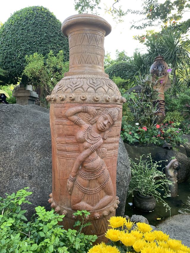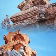 婆那加塔也译作天依女神庙,因为这里供奉的是天依女神(Po Nagar)——庇佑占婆王国南部的一位女神。该神的地位相当于佛教、印度教中神祇七俱胝佛母和难近母。婆那加塔的建筑风格有些吴哥窟的味道,但规模要小的多。