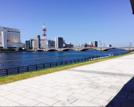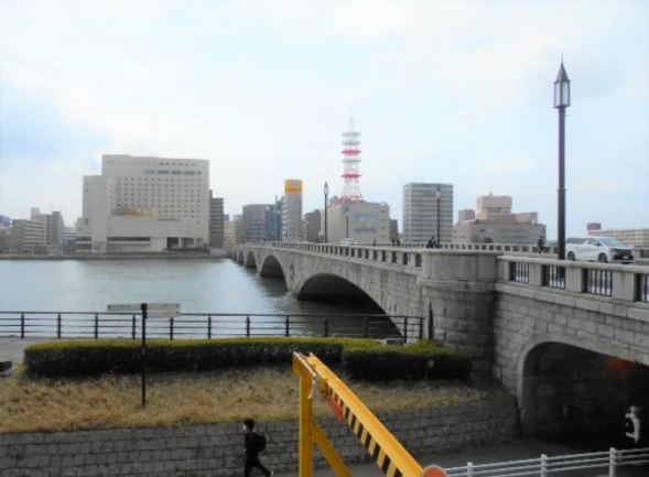5分 超棒跨上 信浓川的一个桥。 现在是国道7号下的、日本国指定重要文化财。JR信越本线、越后线、上越新干线 新泻站 万代口 出来后随着马路一直走大概500米就到。 万代口出来往左手 有 观光案内所。非常方便。