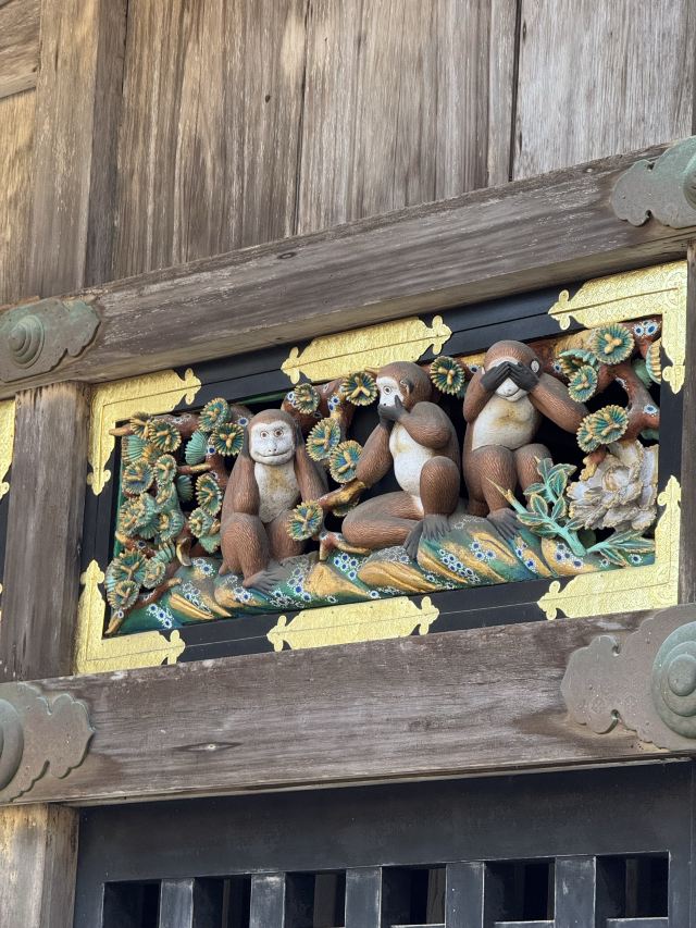 日本全国有多座东照宫,但位于日光市的是本社,而且也是德川幕府创立者——德川家康的陵墓。来到日光东照宫,你可以欣赏到日本江户时期精致的木工雕刻艺术品。其中比较有名的一处是在一个马厩里,雕刻着3个用爪子捂着眼、耳、嘴的猴子,这取自论语“君子非礼勿言、非礼勿视、非礼勿听”。