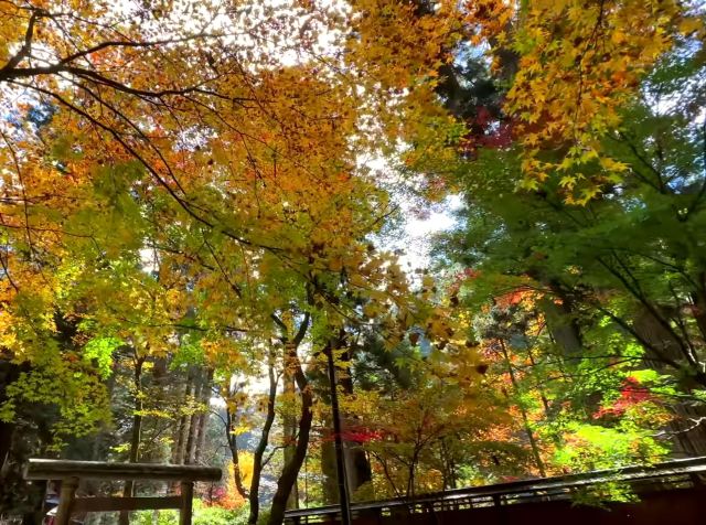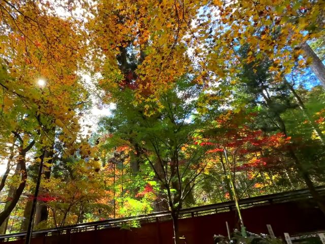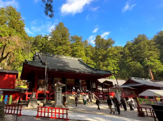 5分 超棒踏入轮王寺,秋意正浓。参道两侧古木参天,枫红与金黄层叠交错,阳光筛落一地碎金。三佛堂的朱漆大门在澄澈蓝天下更显沉静庄严,千年香火缭绕,与落叶的微凉气息交融。