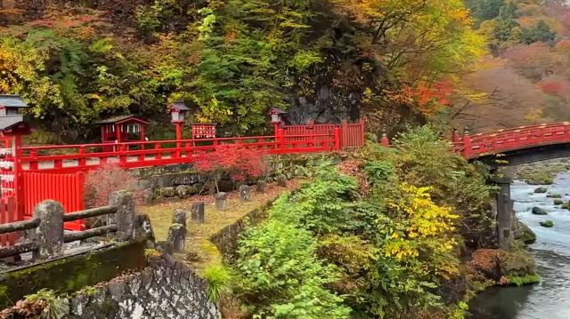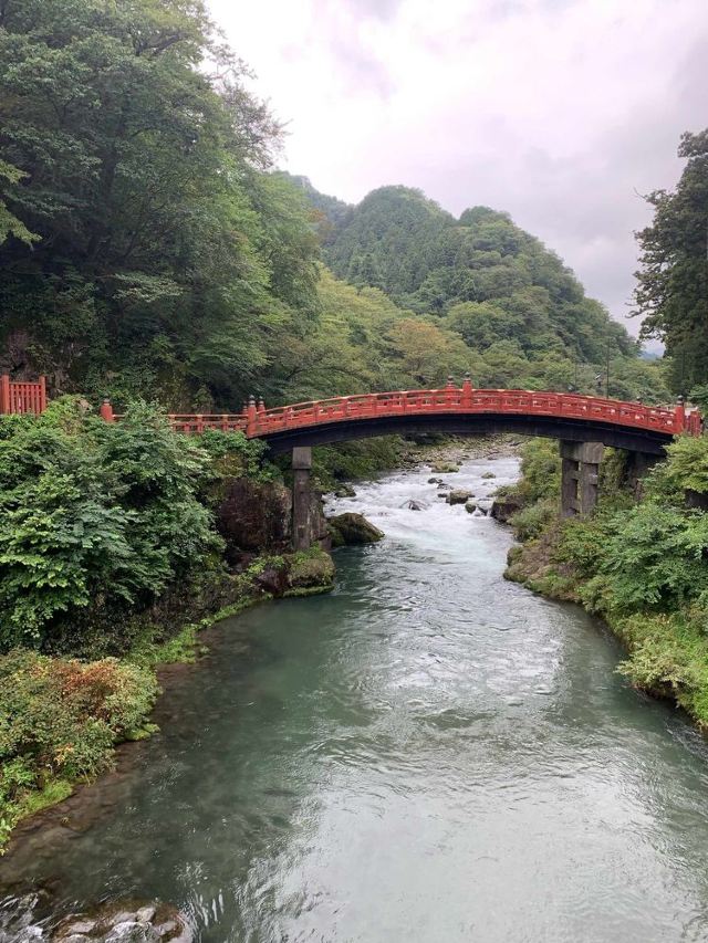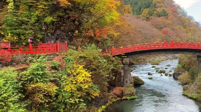 5分 超棒朱红神桥如弓悬于碧水之上,是日光山境庄严的序曲。秋日来访最妙——桥身赤色与层林绯红在光影间交织,桥下大谷川奔流清冷,载着落叶与碎金般的阳光潺潺而去。立于桥前,风过时梢头泼洒绚烂,彷佛这座圣桥不仅连接着两岸,更连通了人间与幽邃的灵山之境。桥柱沉稳扎根急流,经年水痕如岁月锈色,静述四百年风霜。当脚步踏上木板微响的瞬间,恍惚觉得走过的不仅是一座桥,而是从喧嚣渡向深秋的静寂,渡向山寺钟声悠悠的、辽远的神性时光。