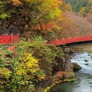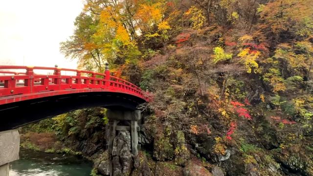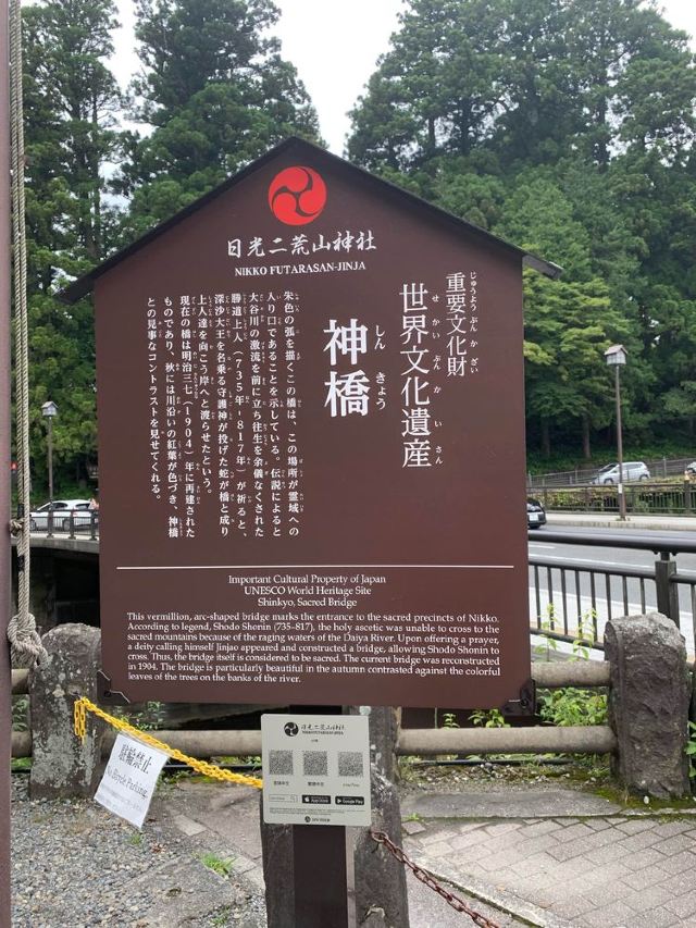 朱红色的神桥是日光的圣地,属二荒山神社所持有,是日本的重要文化财产,并被列为了世界文化遗产。这座桥早在奈良时代末期就已经建成,与山口县锦带桥、山梨县猿桥并称为“日本三大奇桥”。
