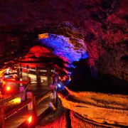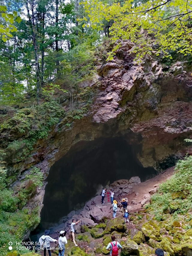 3分 不错景区分三个部分,首先是熔岩洞,只有很短的距离,装饰得五颜六色的,不解释会以为是挖出来的隧道;其次是三个岩洞(仙洞,冰洞和雾洞)呃…..像塌方塌出来的;最后是爬山看火山口,我以为是地下森林,实际还要往山上爬挺远的,全程绕火山口转一圈据说有1400米,其实不说是看不出来是火山口,就一个大坑,森林里很香,枫树和松树的味道,缺点是台阶很陡,不少老人一边走一边抱怨伤膝盖!配套的展馆有抗战纪念馆和火山博物馆(没开)