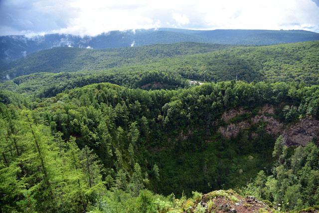 4分 满意火山口国家森林公园,去的时候雄狮岩洞在维修。沿着栈道走了个环形,经过3个火山口,各个火山口也没标几号,其实就是3个大坑,里面郁郁葱葱都是树,名曰火山口森林。还有些小景点,冰洞里果然有些许冰,洞口就感觉很凉快,还有仙洞、雾洞,就没什么看头了。