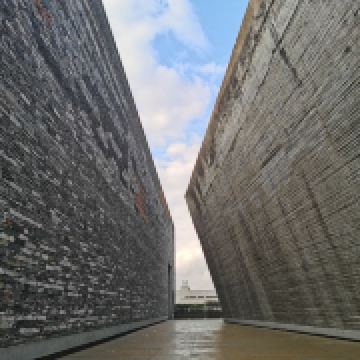 宁波博物院位于鄞州公园附近,馆内没有特别稀有的文物,但关于宁波的历史、民俗的展览很全,足以供你一窥座城市的历史。此外,博物馆的建筑本身就是一件“展品”,造型颇有设计感,很多人甚至就是冲着看建筑来的。博物馆是建筑师王澍先生的作品,外墙上使用了大量宁波老建筑上拆下来的旧砖瓦,有的墙面是倾斜的,而若是你仔细看,还能发现砖瓦上当年烧制时留下的符号。博物馆周边有荷塘和芦苇塘映衬,既现代,又充满了传统韵味。展厅一共分三层,一层展厅是临时特别展览,有时需另外购票参观,二层和三层则是免费的常规展览。博物馆二层是主题陈列《东方“神舟”——宁波历史陈列》,是馆内主要的看点。四个厅的展览讲述了宁波自远古时期至确立州城,再到成为国际港口和东南都会的历史。在这里你可以看到蜡像复原的河姆渡生活场景、越窑的出土瓷器,还有江厦街景、通商场景的复原。可以对宁波从古至今的发展历程有一个系统的了解,值得用心看看。三层则是竹刻和宁波民俗的专题陈列。“阿拉”老宁波民俗陈列比二层的展览更为生动,置身展厅内,你可以走在复原的老宁波街巷中,看街边林立的老城墙,以及一些传统工艺品的展示,仿佛穿越到上个世纪的宁波街头。出了民俗陈列馆是一个露台,走累了可以在此休息会儿,而后前往竹刻馆继续参观。