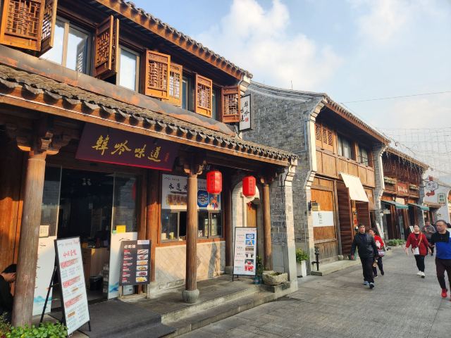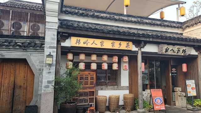 5分 超棒韩岭村以老街闻名,老街以市闻名,老街从龙门桥头至下步滩湖滨,路面全用鹅卵石砌成,当年王安石治鄞重建湖界,韩岭村已形成,逢五、逢十的定期集市,城市里生活的人们大多难以想象关于“市”的场景,那如节日般的胜景,在偃息了多年之后,依旧深深地萦绕在韩岭老人们的记忆里,九曲如练的街巷里弄、古井、古桥,无不映刻着岁月的风雨侵蚀和历史留下来的踪迹,形成于南宋初期的韩岭老街繁盛时期,有百余家商铺,整条街分上、中、下三段,上段多为零星小杂货铺,从江南地方特色的古早味道到新时代创意美食,从儿时的甜蜜记忆到国际生鲜甜品韩岭美食,都能带来一场舌尖上的惊艳旅行,东钱湖麻糍之类的小吃,基本10元一份,麦灰汁团、水塔糕都尝一口,简单的快乐很容易拥有,中段为韩岭老街之精华,店铺多为实力雄厚、卓有信誉的老字号,韩岭油赞子也是声名在外,排队的人络绎不绝,几袋几袋打包带走,品尝老宁波味道,土豆饼、萝卜丝饼、炸豆干、烤菜年糕,各种美味小吃都能在这里找到最家常的做法,最地道的美味,炸鹌鹑、臭豆腐、灰汁团,在熟悉的烟火味里走街串巷,回到老宁波的青石板路上,下段则富有时代气息,五洋杂货,两广百货、花色棉布、南北货店多集中在这,在接近航埠头地段,还有几家客栈,供来往不及返城的商旅,留宿避风雨,回过神来,虽然集市不存,但老街依旧流淌着村庄古朴生活的点点滴滴,溪边玩闹的声响,是属于童年时候的声音,韩岭老街湖光山色文化馆里,笔墨之间留下了对生活的态度,几只鸡随意地在街上行走和正在家门口午睡的黄狗狗似乎相处得很融洽,人、景、物都随性却又积极地 在这里存在着,古色古香的面馆里,相识的人们在这里共享美味,韩岭溪沿街而流,几乎是贴着家家户户的墙角跟,东西两条街上各自露面,供了几代人童年,儿时摸鱼的溪水奔淌到今天仍清洌可见,时间仿佛都凝固在了这古老而沉默的山村石屋群中,逗逗黄狗和老乡们对坐攀谈,这一刻恬静的自由,妙不可言。