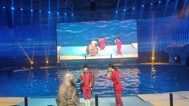 海洋剧场更是把欢乐值拉满,可爱的海狮、海豚和白鲸在驯养师的引导下,做出各种高难度动作,水上芭蕾、空中顶球,萌态百出,观众们的掌声和欢呼声此起彼伏。