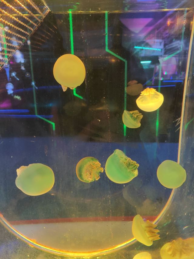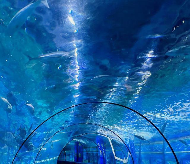 一进园区,浓厚的海洋氛围就扑面而来。在水族馆,各种鱼类色彩斑斓,灵动又有趣,最惊艳的是那180°全景海底观光隧道,漫步其中,仿佛真的置身于海底,成群的鱼儿和巨大的海龟在头顶游弋,超级震撼。美人鱼表演也很精彩,演员身姿曼妙,和鱼儿共舞,如梦如幻。