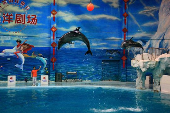 宁波海洋剧场(宁波海洋世界店)设有日本瓶鼻海豚、俄罗斯白鲸、俄罗斯海象、南美海狮、加州海狮、北极狼、北极狐、跳岩企鹅展示区,海洋科普教育长廊、白鲸拍照互动区和海洋科普馆。新颖时尚、振奋人心的剧场表演区一次性可以容纳2500多名观众,在星光闪耀、万人瞩目的华丽舞台上,看海洋动物明星才艺大汇演。