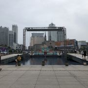 这一带景点也不少,广场南部坐落着一座宏伟的哥特式建筑——药行街天主堂;广场西部则有一座供奉神农氏的药皇殿,是一座拥有三百多年历史的清代建筑,这些都值得去参观一下。而有名的月湖公园就位于广场以西800米处。
