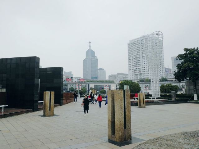 广场上所有的建筑沿中心广场环形布局,南北以中山路口为轴线呈对称分布。