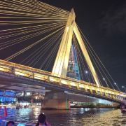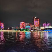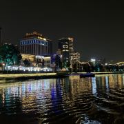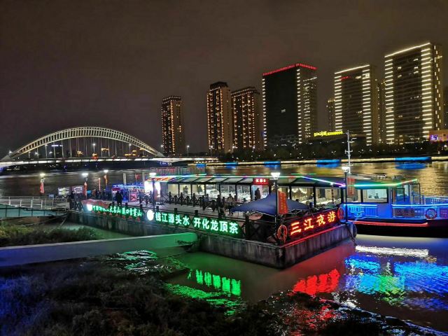 微信小程序三江夜游作为“走读三江,乐享山水”的宁波城市符号,以“品江南美食,听甬城故事”为品牌形象。姚江、甬江、奉化江三江汇集之处,整个航线采用环线巡游,从老外滩码头出发,全程约50分钟。大运河宁波三江口作为京杭大运河的浙东段和海上丝绸之路的交汇点,是宁波“顺着运河去看海”的起航地。夜游航线覆盖宁波繁华的大运河宁波三江口黄金航道,沿途可以欣赏到宁波标志性建筑物之一的财富中心“玉米楼”、老外滩、天主教堂、庆安会馆等宁波经典地标。