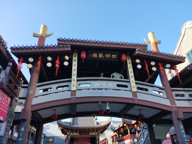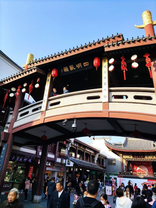 在东西两端入口处的两座古石牌坊,以及城墙遗址、子城历史变迁的石碑、宁波鼓楼附近的永丰库遗址公园,可供你仔细品读宁波的历史。到了晚上,宁波鼓楼一带人气很旺,景观灯亮起时格外适合拍夜景。