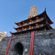 宁波鼓楼也叫做海曙楼,是宁波市仅存的古城楼遗址。它的下部是中国传统的城楼样式,城楼之上却是罗马风格的钟楼,中西合璧的造型别具一格。如今宁波鼓楼周边是一片仿古步行购物区,油赞子之类的宁波特色小吃值得一尝。