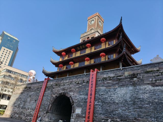 5分 超棒宁波鼓楼始建于唐长庆元年,已有1100多年的历史。它是宁波历史上正式置州治、立城市的标志,作为宁波市仅存的古城楼遗址,鼓楼被列为国家文物重点保护的古建筑之一。登上鼓楼,可以俯瞰整个宁波城的全貌,周围还有许多摊点,吸引了不少小伙伴们前来参观。