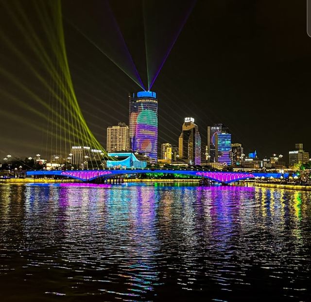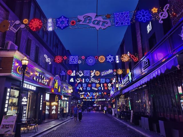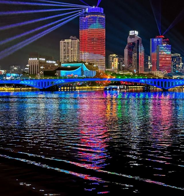 随着夜幕降临,老外滩瞬间换上了另一副迷人的面孔。华灯初上,滨江建筑、景观步道、街巷商铺等被灯光逐一点亮,整个街区变得流光溢彩。人民路沿街的光影巨幕秀,将历史与现代元素巧妙融合,变幻出绚丽多彩的画面;滨江开放空间的沉浸式夜游灯光互动体验,让游客仿若置身梦幻之境,趣味性十足;国家级文保房天主教堂的灯光秀,美轮美奂,独特的哥特式建筑在灯光映照下更显庄严肃穆,成为当之无愧的网红打卡点,吸引着无数游客拍照留念。