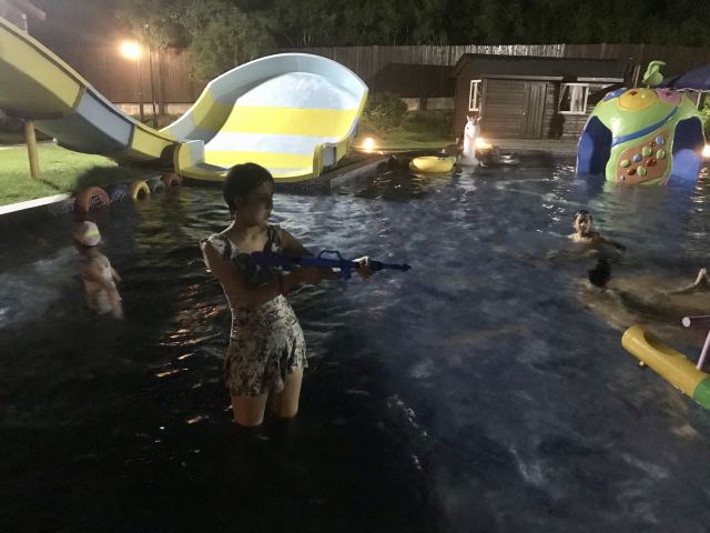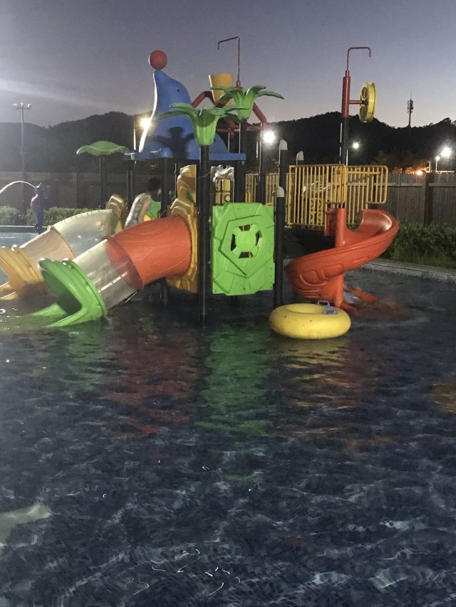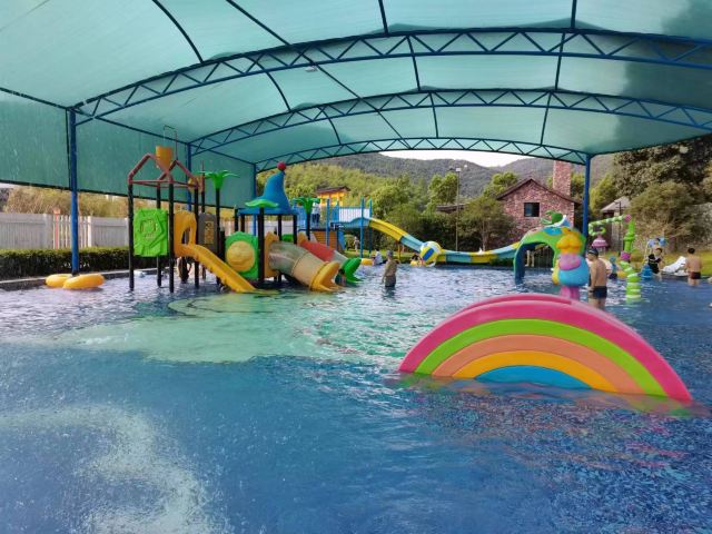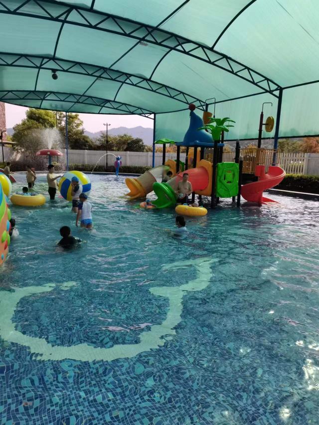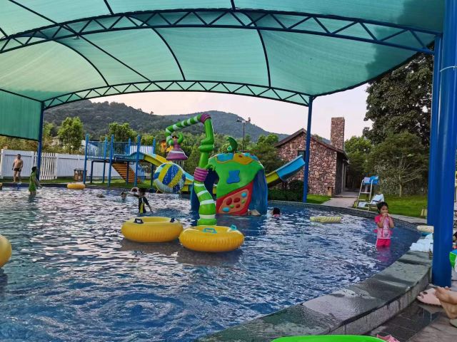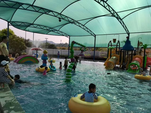 5分 超棒很推荐,儿童游乐池很大,有不少设施。室外温泉池子很多,由低到高,绿植围绕,有野趣。也有室内泳池,适合亲子,家庭聚会。有免费饮料和水果,品种不太多。