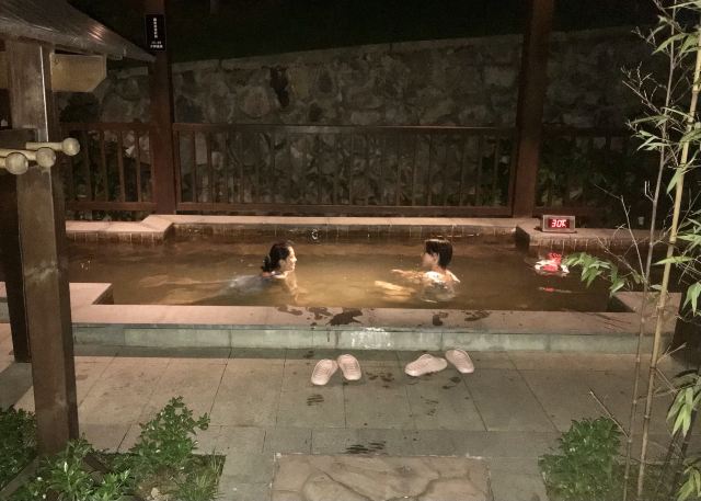 5分 超棒真的是被惊艳到了,99的票价真的好划算。内部环境不错,女宾的阿姨很热心,也有一次性对手机防水袋很贴心。温泉整体环境很好,还有适合小朋友玩的水世界,还有可以租借的自动水枪,虽然是室外的水世界但是有一个巨大对遮阳棚,可以隔绝大部分紫外线就不用担心晒黑啦。室内也包含一个理疗池。往水世界但是另外一边走就是泡温泉的池子有冷池和热池,尤其是小鱼温泉特别有意思,看着小鱼游来游去一天的疲惫都被治愈啦!泡完温泉返回二楼洗澡的时候发现淋浴水流很急洗着很舒服洗发水洗完也不干燥洗完澡还可以返回一楼汗蒸,泡完温泉的时候蒸一下真的太舒服了!三楼有提供免费的水果很新鲜,公盘里的水果吃完了阿姨也会及时添加,并且会及时收走我们吃剩的垃圾。公共区域也非常干净、整洁。三楼也有烤肠、爆米花、关东煮等小吃,特别适合消耗体力后补充能量。期待下次泡温泉!!!