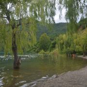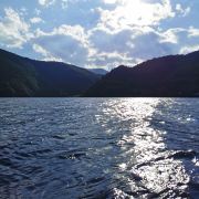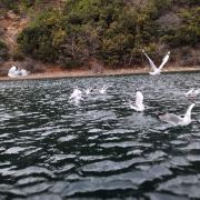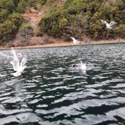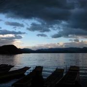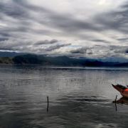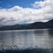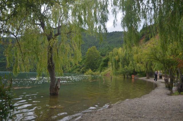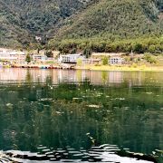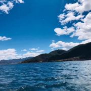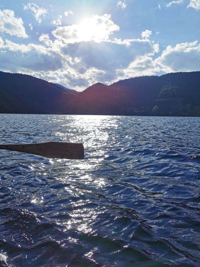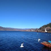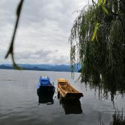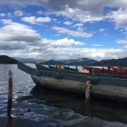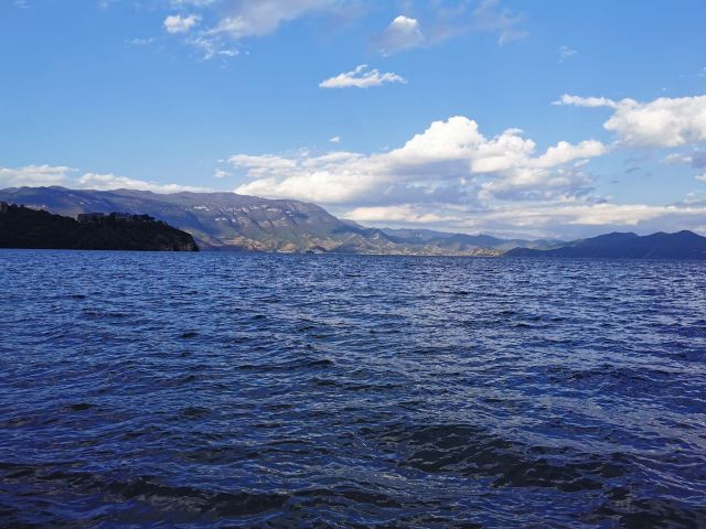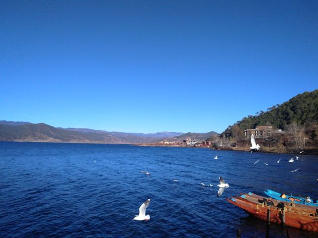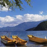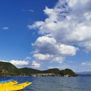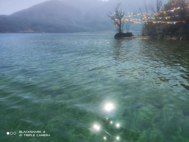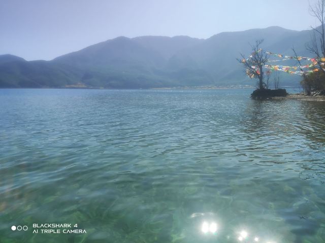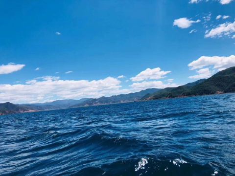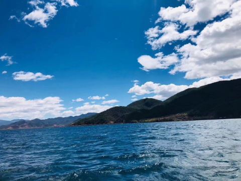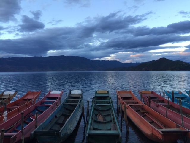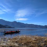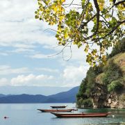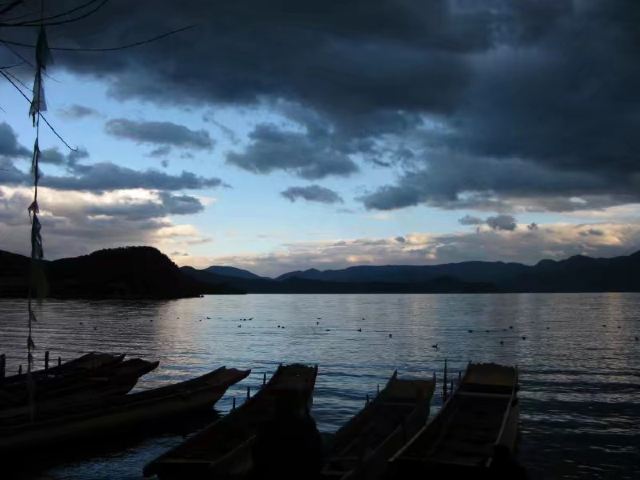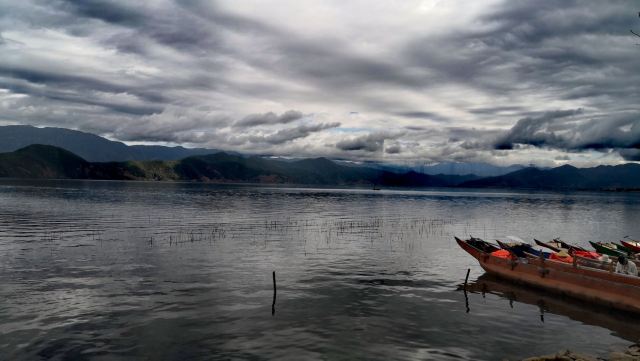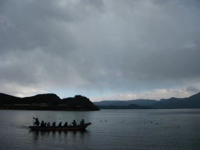 槽船由一根粗壮的镂空圆木,两头削尖制成,因其看起来像一只长长的槽而得名。泸沽湖湖水碧蓝清澈,藻花点缀其间,湖中的通工具是摩梭人特有的“槽船”。