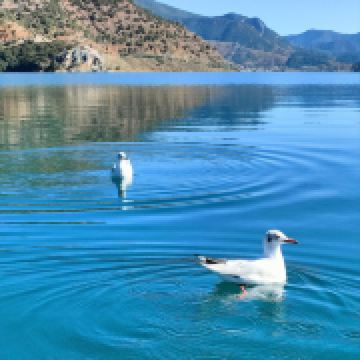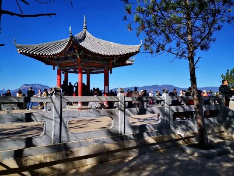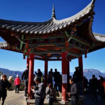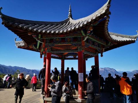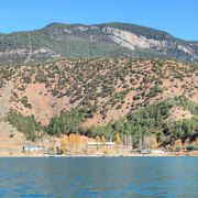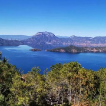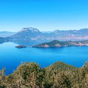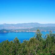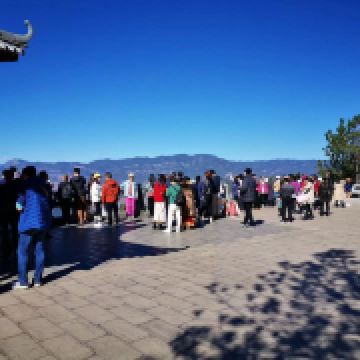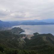 观景台就在泸沽湖景区大门口附近,一般游客从丽江驱车而来,一进入大门后就会到达这里,也算是该景区的门户。这里视野非常开阔,整个湖面都尽收眼底,蔚蓝的湖水、湛蓝的天空,还绿树环绕的湖岸、景色优美的里格半岛,一起构成一幅美妙的画卷,正是摄影师们无比热爱的拍照天堂。绝大部分的游客到观景台时都会下车拍照,乘坐大巴前来泸沽湖的,司机一般也会在这里停车给大家拍照。