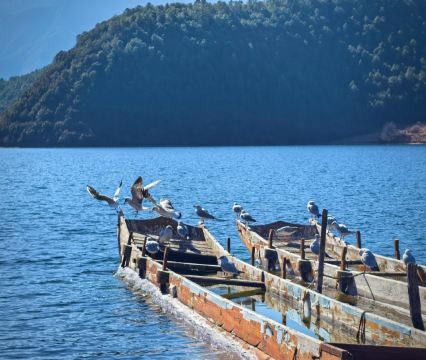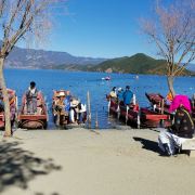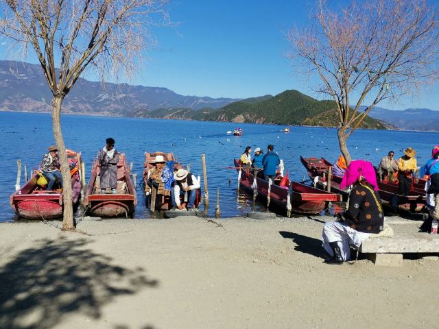 很多游客会选择在这里多住上几天,每天安静的到湖边逛逛非常悠闲,经常可以看到村里的小孩子们在湖边无忧无虑的玩耍,蔚蓝的湖水、悠悠摇曳的猪槽船、对面的悠悠青山,都是美妙的画卷。而每到晚上,当地的摩梭人更是会穿起传统服饰,表演歌舞,十分热闹。欣赏完民族歌舞,还可以到湖边支起的帐篷里去烧烤。