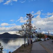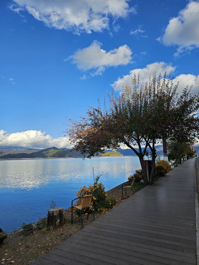 景色:这里的自然景色简直绝了!湖水清澈见底,像一块巨大的蓝色宝石,与蓝天、白云、青山相互辉映,构成了一幅如诗如画的美景。清晨,湖面常常笼罩着一层薄雾,宛如仙境;傍晚,夕阳的余晖洒在湖面上,金光闪闪,美得让人窒息。沿湖散步,每一步都能收获不同的风景,随便一拍都是大片质感。