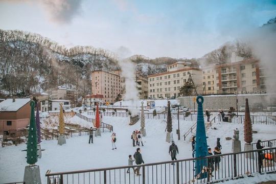 登别温泉种类繁多,有11种水质的温泉水。若是在冬日的下雪天,泡一泡露天温泉,格外浪漫舒适。