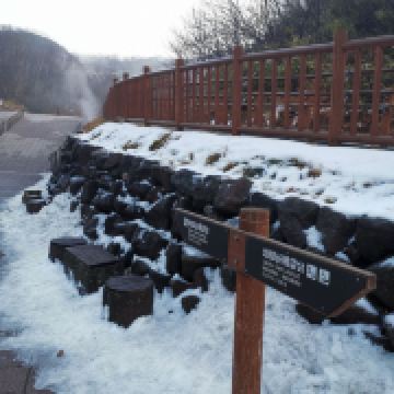 走在景区内的栈道上,两边是被熔岩侵蚀过谷地,四处冒着白色的气体,还有被岩浆烧灼过的黑色石块。途中你会发现数个泉眼及流动的泉水,有时甚至会看到沸腾的岩浆和硫磺溶液,非常震撼。如果是秋天来,周围的山上会开满红叶,与谷地形成很大反差,看点十足;而冬天则有白雪覆盖,又是另一番美景。