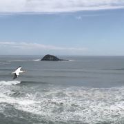 岛上的海滩是黑色的,向北延伸60公里,是奥克兰壮观的黑沙冲浪沙滩之一,每年享受这里环境的不仅有塘鹅,还有冲浪爱好者们,岛上的强风和海中的巨浪每年都吸引了来自世界各地的冲浪爱好者们。