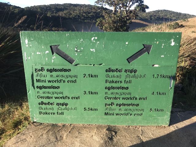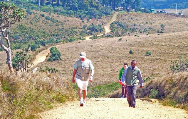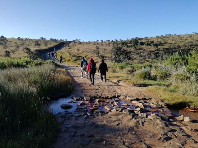 前往霍顿平原国家公园一般需要包车,抵达大门购票后可以开车进去行驶一段路,然后从停车场开始徒步游览。国家公园内有一条环形徒步路线,总长约9.5公里,游客只能根据路标在规定的范围内行走(强烈推荐按照顺时针方向行走),走完全程大概需要3-4小时。从入口走到世界尽头大约4公里,之后再走2公里有一处贝克瀑布,接着走3.5公里回到入口处。