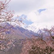 林芝地区的桃花是高原桃花,所以大部分都是在山脚桃花盛开,远处是雪峰,独有的风味。