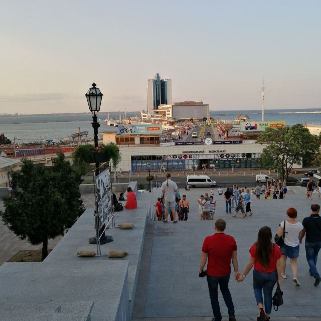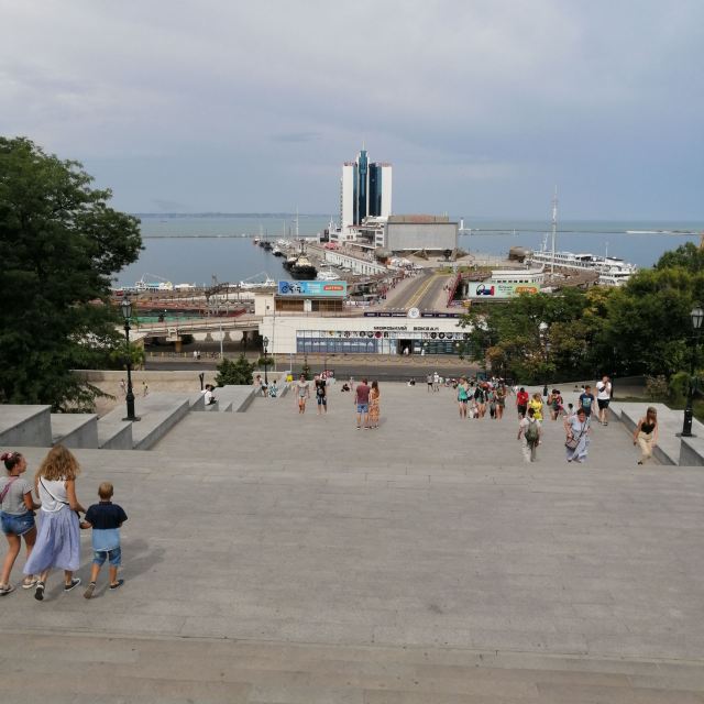 从市中心半圆广场通向海边的“波将金阶梯”共有192级,台阶自上而下逐级加宽,站住高处,可以鸟瞰整个美丽的敖德萨港。