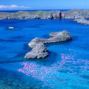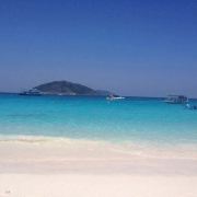 这是由平滑柔顺的白沙和湛蓝的大海組成的海滩,夏天偶尔会遇见海龟产卵,或是寄居蟹群居的场景。这里的珊瑚很少,可以放松地在海中游泳。