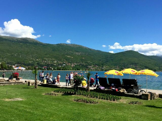 除了吸引生物学家和考古学家纷至沓来,清澈湛蓝的奥赫里德湖四面环山,湖岸陡峻,风光旖旎,是马其顿国人及世界各国游客的度假胜地。