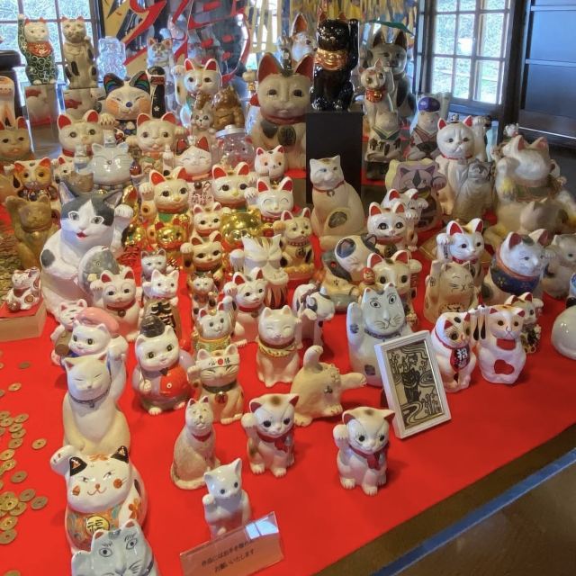位于冈山市北区金山寺附近的招财猫美术馆,馆内大大小小各种各样的招财猫展琳琅满目,日本全国各地的艺术家们制作的各种材质多达700只的招财猫被收集于此。