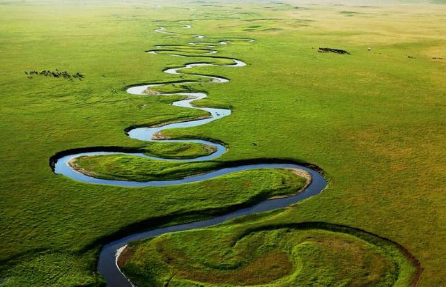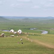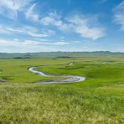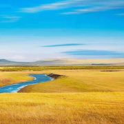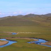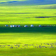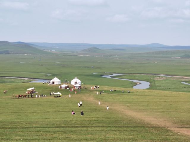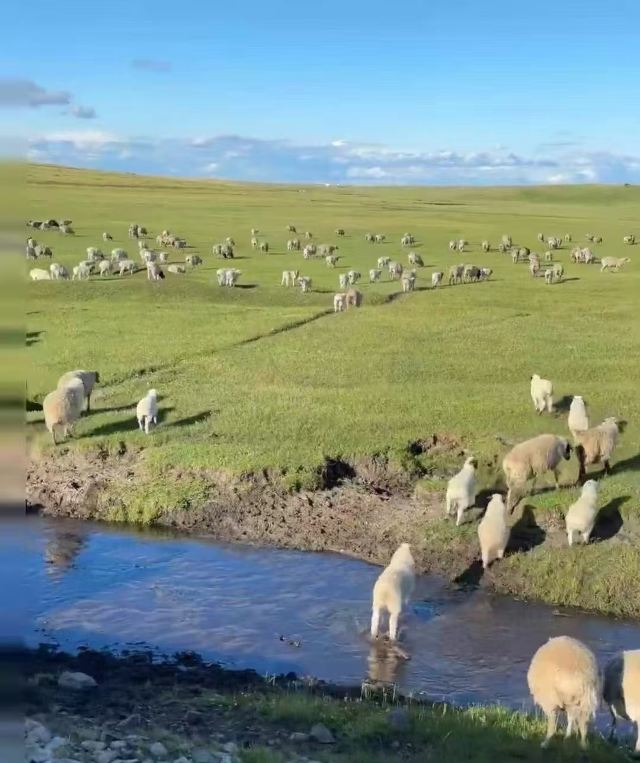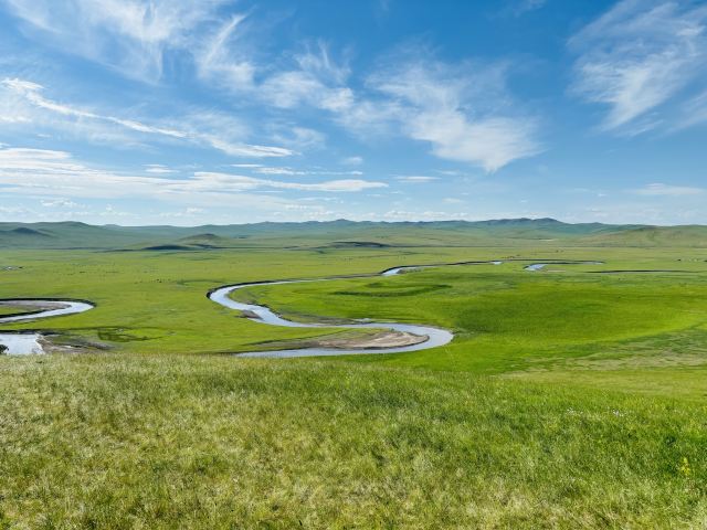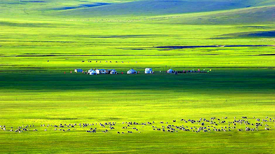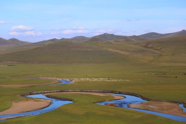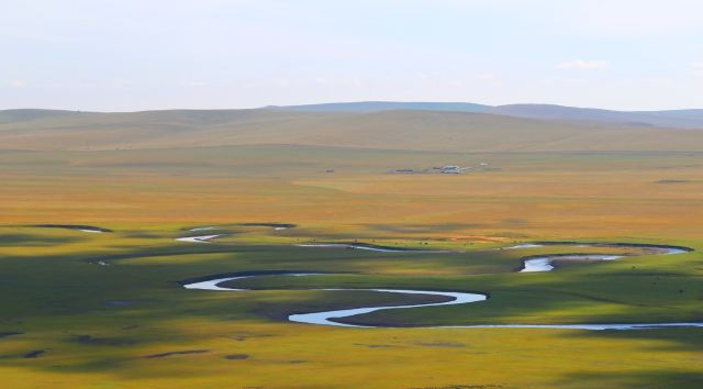 每到水草丰美的夏季,星星点点的蒙古包、成群的牛羊散落在河畔,点缀着一望无际的如茵草原,描绘了一幅诗和远方的美丽画卷。