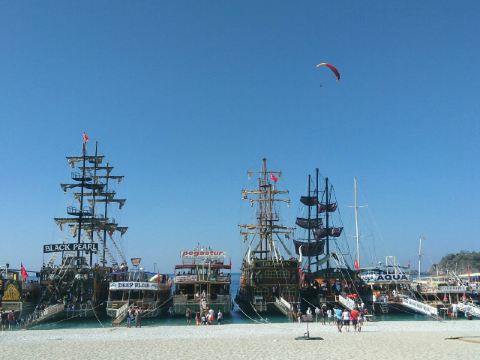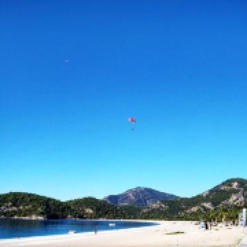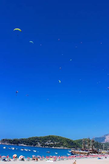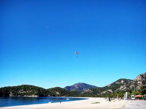 土耳其死海位于费特希耶以南的厄吕代尼兹,虽然地名令人不寒而栗,这里却有着足以饱览地中海沿岸风情的细软沙滩,而更衣室、淋浴房、露天酒吧也一应俱全,是土耳其欧式海滩中的典型代表。地中海在土耳其漫长而曲折的西南海岸线上的一个大转弯,造就了面积庞大的土耳其死海。整个海岸被群山环抱,形成一座平静无波的澙湖,由于这里的海水波澜不惊,水中的倒影几乎静止不动,因而得名“死海”。这里是土耳其西南部的天然海水浴场,可以游泳,但海滩多鹅卵石,建议穿沙滩鞋。此外滑翔伞也是这里流行的运动,飞到空中体会平和静谧,与蓝天碧海、青山白沙融合一体的感觉,十分美妙。