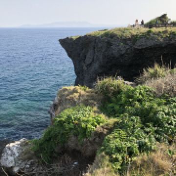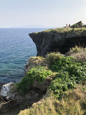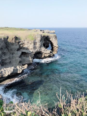 这个美丽的大草坪位于海边的一座断崖之上,周围的植物群落被冲绳县指定为天然纪念物。从那里可以欣赏海天一色,也可以俯视悬崖峭壁下的珊瑚礁和惊涛拍岸的壮丽景致。万座毛其实很小,半环形绕一圈走下来可能就10分钟,标志性景点是断崖绝壁形似大象鼻子,和桂林的象鼻山景区有点相似。从这里可以看到珊瑚礁和惊涛拍岸的画面,而陆地上还有一片片的绿色植物群落。而这里也是香港电影《恋战冲绳》、韩剧《没关系,是爱情啊》等影视剧作品的取景地。